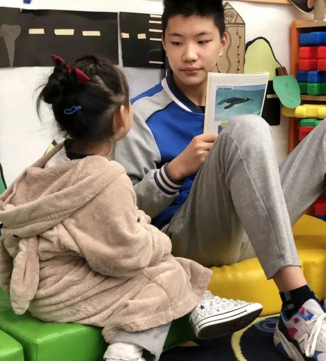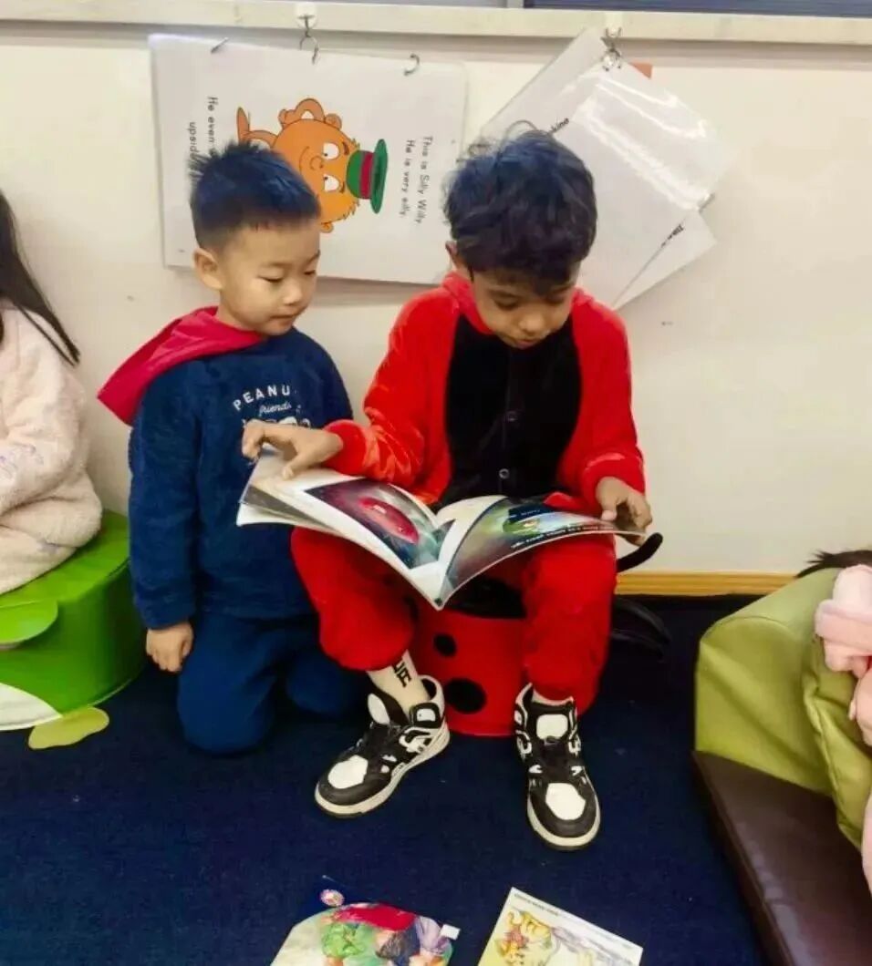 幼儿园和小学的学生一起参加了“睡衣阅读伙伴”活动,在这场活动中高年级的学生给低年级的同学读故事。